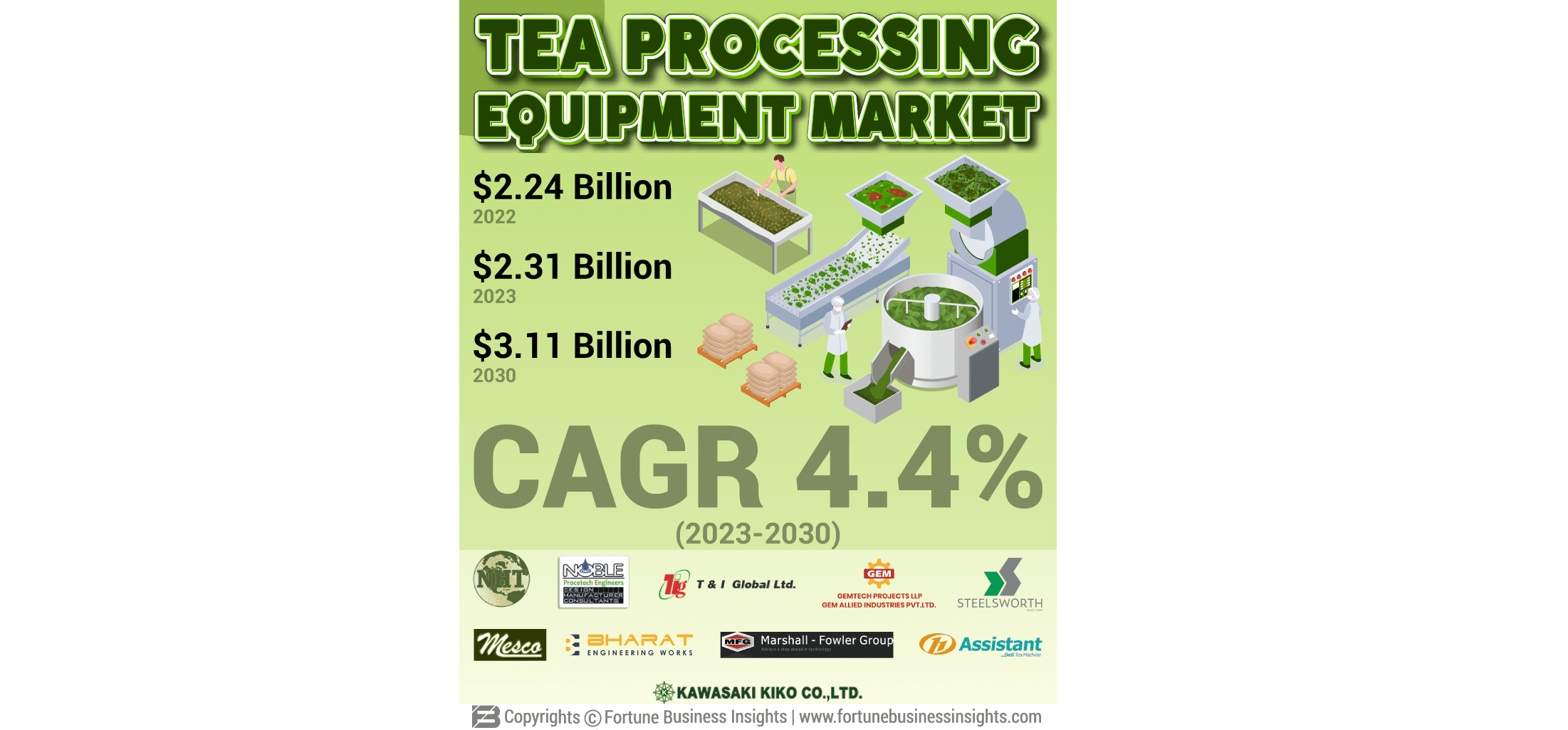 Fortune Business Insights Research Company에서 방금 글로벌 차 가공 장비 시장 규모 2025 의 규모와 추세에 대한 철저한 조사를 발표했는데 , 여기에는 2030에 대한 예측도 포함됩니다. 글로벌 시장 규모, 지역 점유율, 경쟁사 시장 점유율과 같은 수많은 유용한 통찰력과 데이터가 이 최신 시장 조사 분석에 포함되어 있습니다. 또한 다음 전망, 현재 추세, 시장 성공을 위한 중요한 정보에 대해서도 논의합니다.
